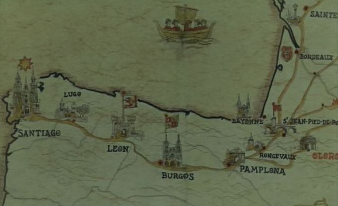 Today, Chèvrefeuille has told us a little more about the history of the Pilgrimage, particularly about how Christians in the first millennium walked three sacred routes, each offering a series of blessings and indulgences. The first led to the tomb of Saint Peter in Rome and its travelers, who were called wanderers, took the cross as their symbol. The second led to the Holy Sepulcher of Christ in Jerusalem; those who took this road were called Palmists, since they had as their symbol the palm branches with which Jesus was greeted when he entered that city. A third road led to the mortal remains of the apostle, San Tiago and its travelers were called pilgrims; their symbol was the scallop shell. In the fourteenth century, the Milky Way – another name for the third road, since at night the pilgrims plotted their course using this galaxy – was traveled each year by more than a million people from every corner of Europe. Even today, mystics, devotees, and researchers traverse on foot the seven hundred kilometers that separate the French city of Saint-Jean-Pied-de-Port from the cathedral of Santiago de Compostela in Spain.