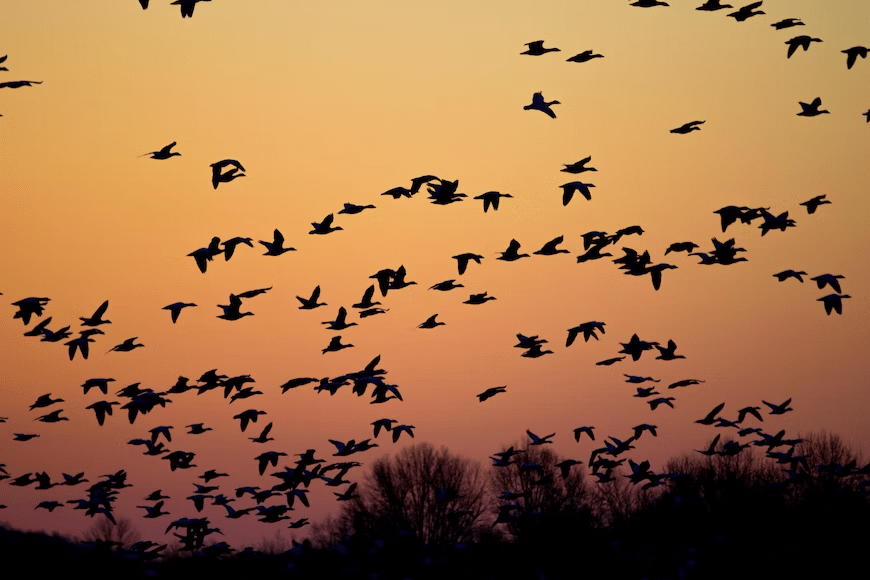 The imagery is vivid and evocative, painting a picture of the geese flying in the sky, and the rhythm of the poem mimics the beat of the wings of the geese. Genius!