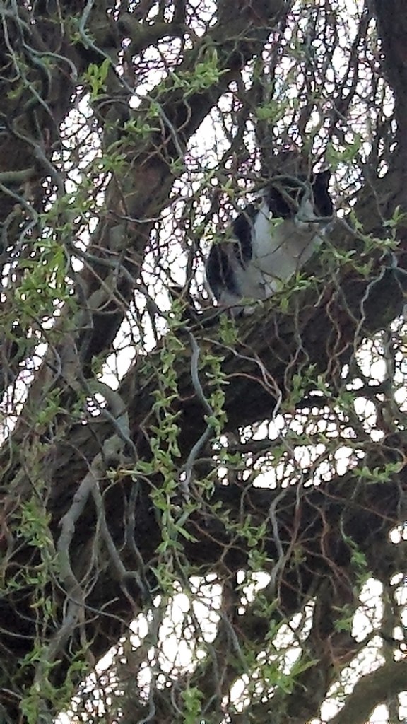 camouflaged in bush and tree.