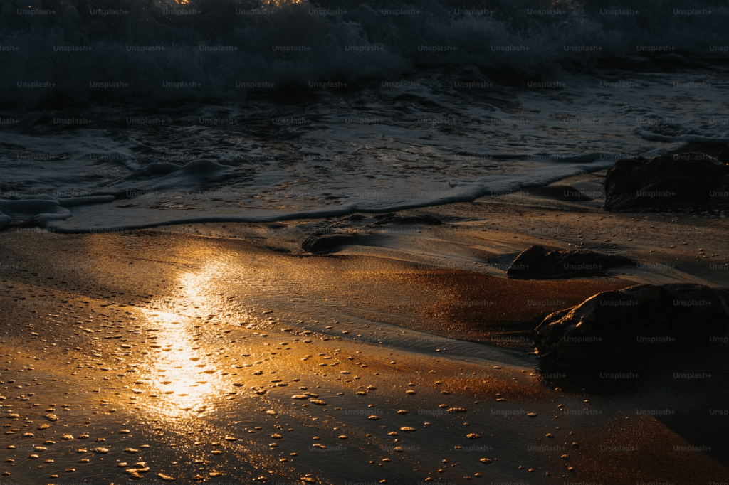 once green as the sea, are dispersed in dawn’s golden light.