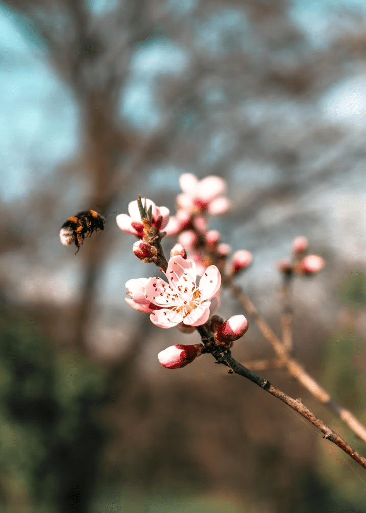 buzzing in a cherry tree,
